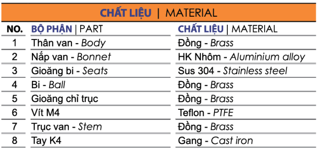 Van bi đồng tay gạt Novo