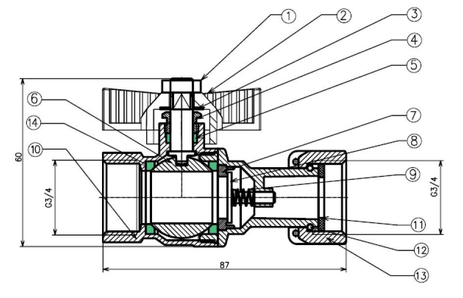 Van đóng mở bằng bi, lỗ to, nối ren.