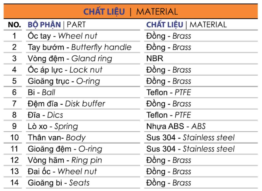 Van bi đồng tay gạt Novo