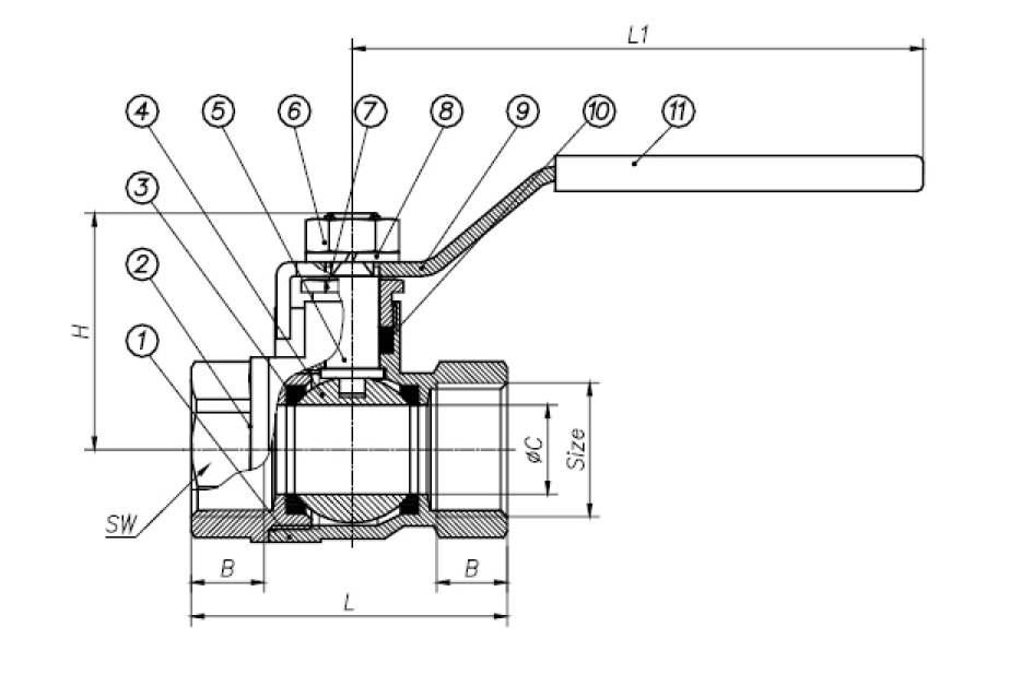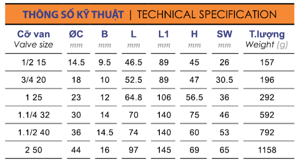 Van bi đồng, lỗ to, nối ren, mạ crom.
