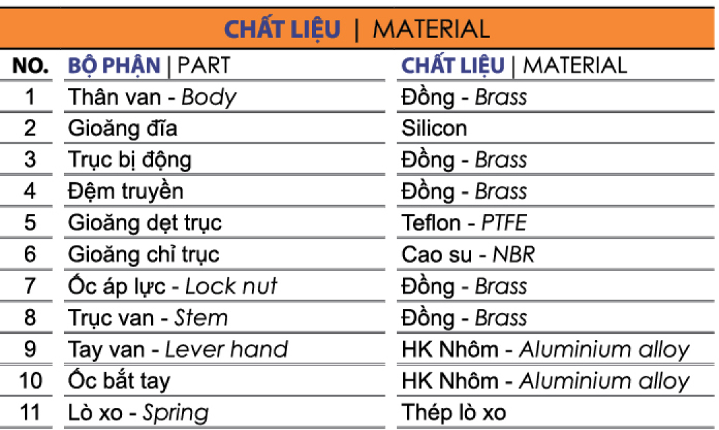 • Áp lực làm việc Max: 150 Bar ~ 150 kg/cm3.