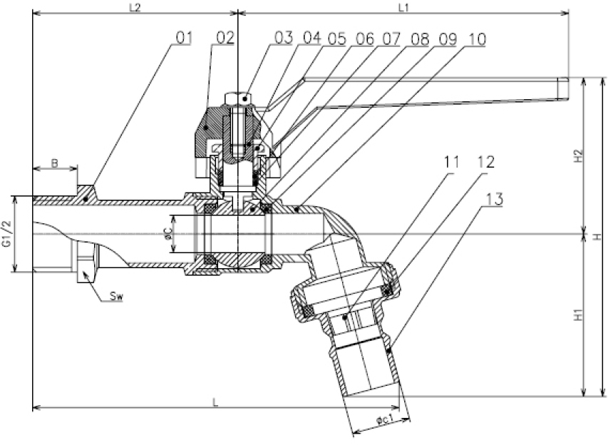 Vòi vườn, nối ren, mạ crom hoặc không mạ crom.
